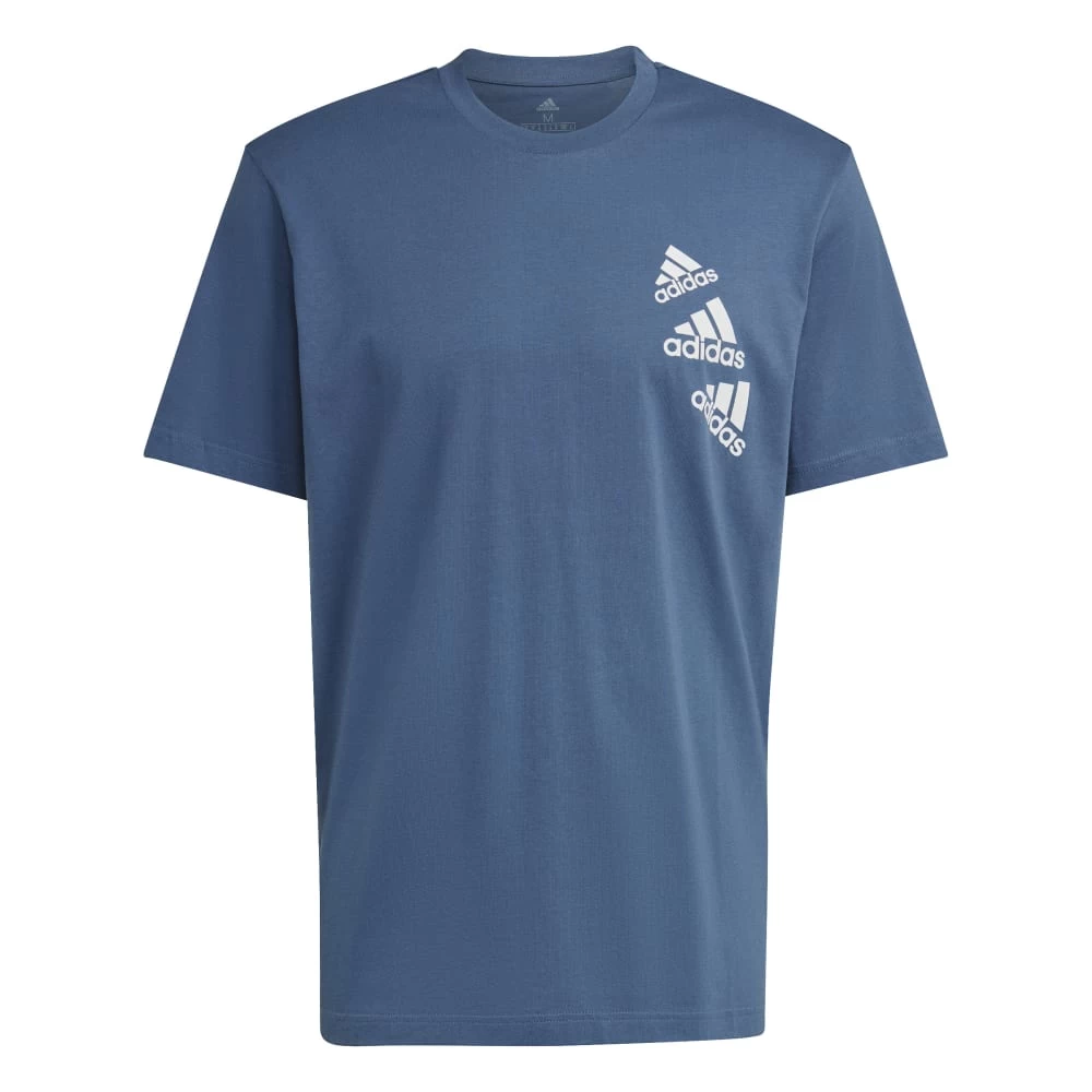 Adidas Training Essentials BrandLove T-Shirt für Herren. Ein stylishes adidas T-Shirt zum Durchstarten. Zeit in der Natur bringt dich auf andere Gedanken und dadurch deinem Ziel ein Stück näher. Dieses weiche adidas T-Shirt mit schlichtem Rundhalsausschnitt passt perfekt unter einen Hoodie oder eine Weste, wenn du an der frischen Luft bist oder dich mit Freunden triffst. Durch die schräg angeordneten adidas Logos wirkt es außerdem besonders lässig.Unsere Baumwollprodukte unterstützen einen nachhaltigeren Baumwollanbau. Locker geschnitten. Rundhalsausschnitt. Teil der Better Cotton Initiative. Material: 100% Baumwolle. Farbe: blaugrau.